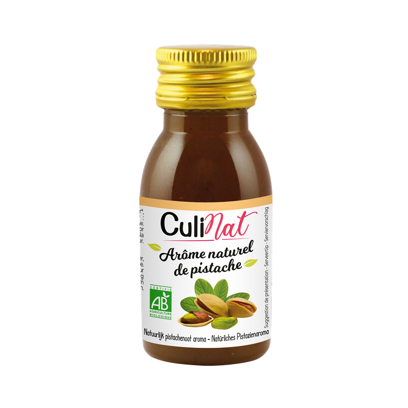 Sirop de glucose*, sucre de canne blond*, eau, arôme naturel de pistache*, correcteur dacidité : acide citrique. *Ingrédients Issus de lAgriculture Biologique.