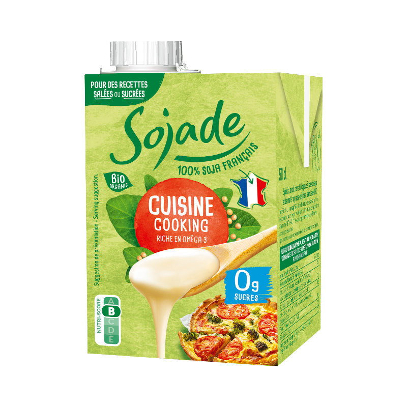 Jus de soja* 86%, huile de soja, épaississants: gomme de xanthane, gomme de guar, sel marin. *Issus de l'agriculture biologique