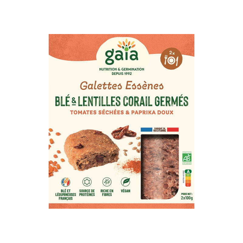 blé germé* (52,32 %), lentilles corail germées* (30,12 %), huile de colza*, tomates séchées* (4,76 %), flocons davoine*, graines de lin moulues*, paprika doux* (0,91 %), sel.