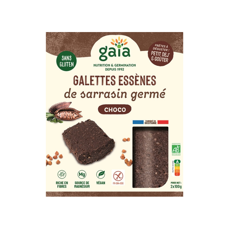 sarrasin germé* (30,86 %), farine de riz complet*, huile de tournesol*, pâte de dattes*, cacao en poudre* (7,56 %), sirop dagave*, sel marin.