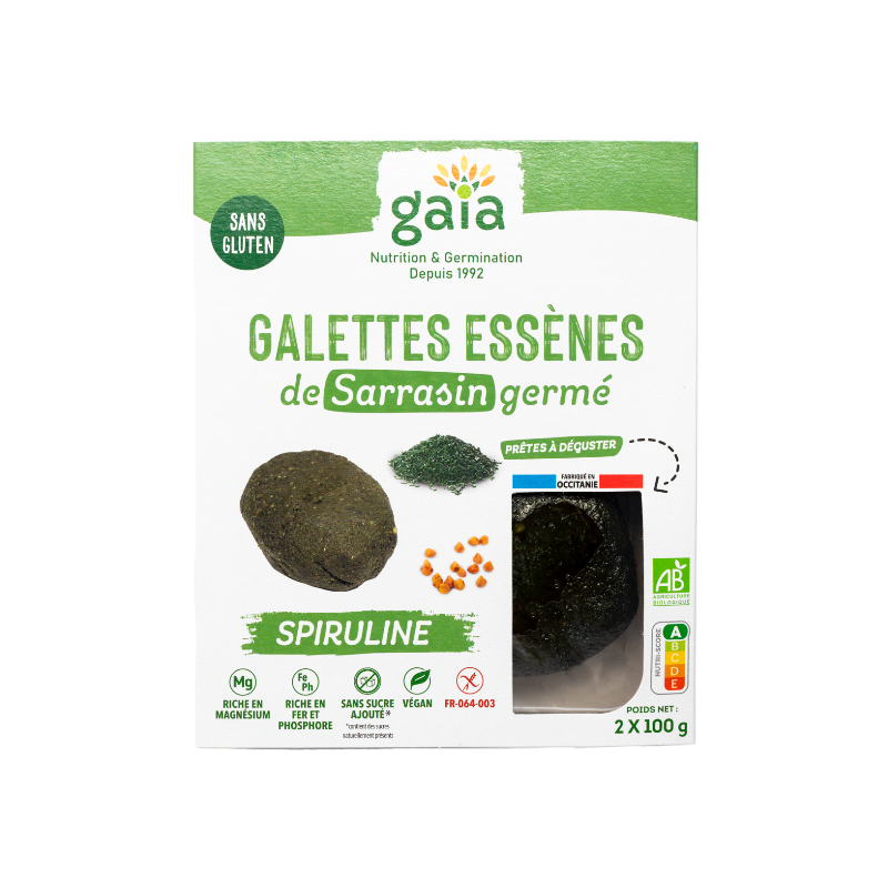 sarrasin germé* (52,52 %), pâte de dattes*, huile de tournesol*, poudre damandes*, farine de maïs*, spiruline* (3,22 %), sel marin.