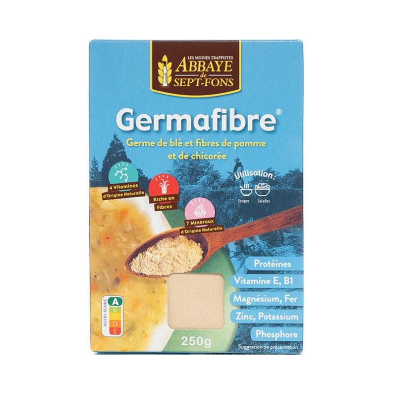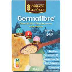 Germalyne® (Germe de Blé Moulu 36%), Fibres de Pomme et de Chicorée, Soja (Non OGM), Arôme Naturel de Pomme, Arôme Naturel d'Abricot.