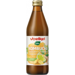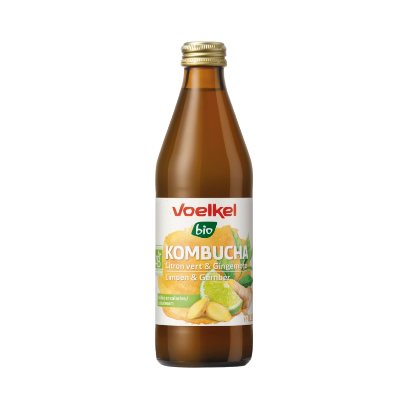 souci*, feuilles de mûrier*, racine de réglisse*, culture de kombucha), jus de citron vert* 2 %, jus de gingembre* 1,5 % (gingembre*, jus de citron à base de concentré*), gaz carbonique de source.