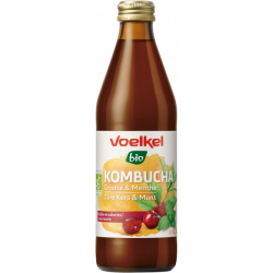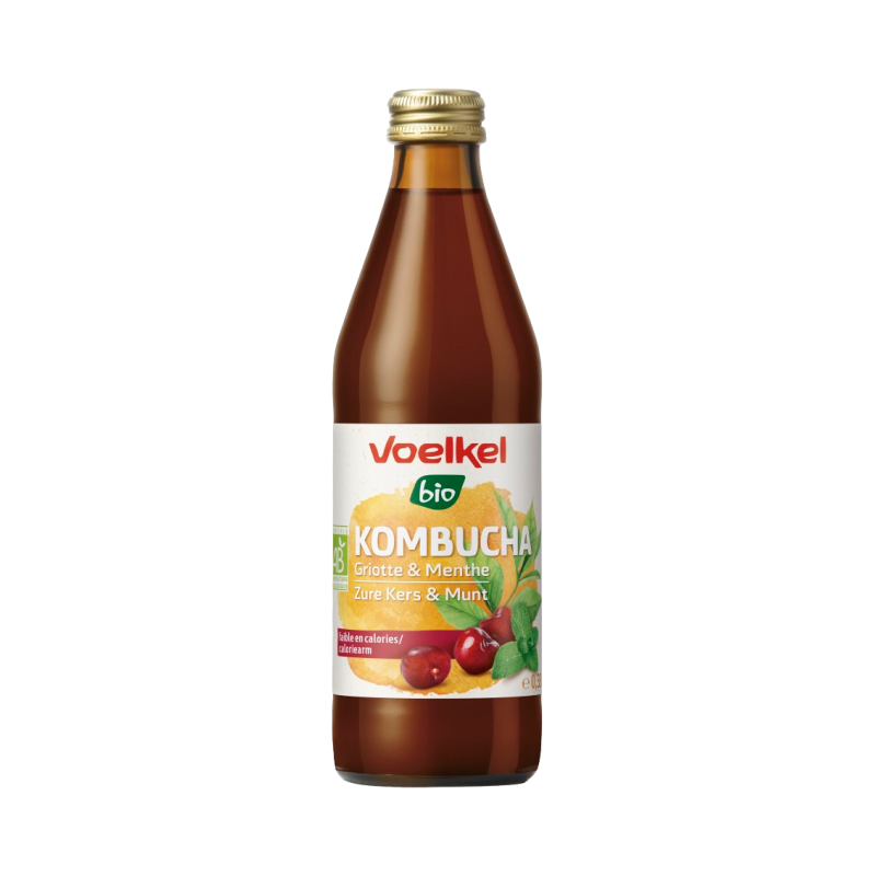 souci*, feuilles de mûrier*, racine de réglisse*, culture de kombucha), jus de griotte* 3 %, infusion de menthe* 2,5 % (eau minérale naturelle, sucre*, menthe*, jus de citron concentré*), gaz carbonique naturel.