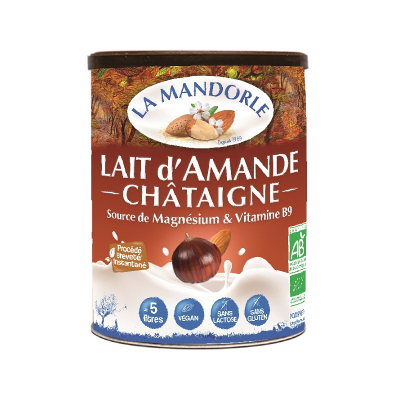 Amandes* Déshuilées Partiellement 25% (Origine Sicile ou Espagne), Farine de Châtaignes* 25% (Origine France ou Italie), Sirop de Riz* Déshydraté,