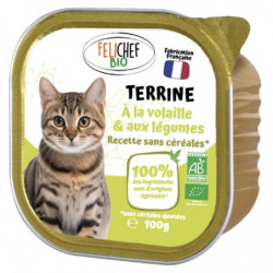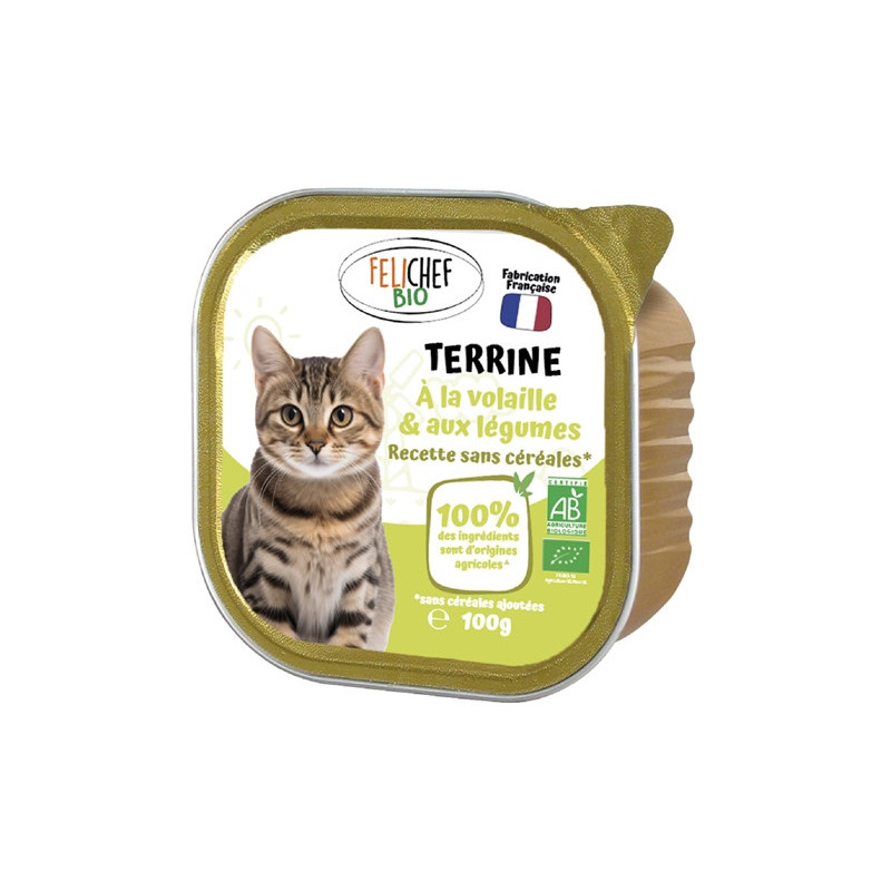 Terrine en barquettes certifiées BIO 100% fabriquées en France pour chat à la volaille