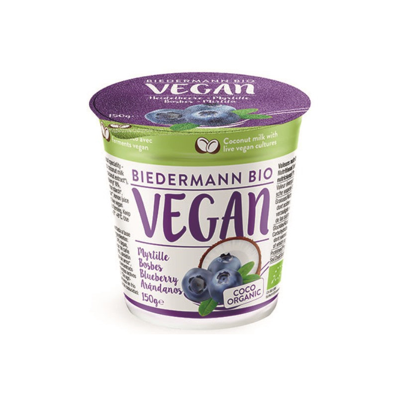 Lait de Coco Light* (Eau et Extrait de Noix de Coco), Myrtilles*, Sucre de Canne Brut*, Amidon de Maïs*, Amidon de Riz*, Agar-Agar*, Concentré de Jus de Citron* et Bactéries Lactiques. *Ingrédients Issus