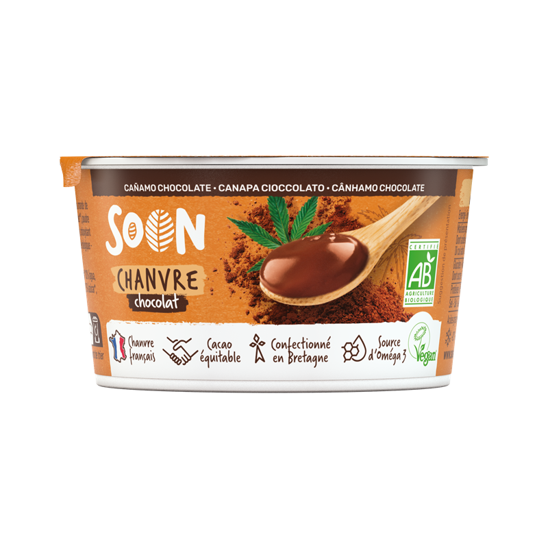 Jus de chanvre* 82% (eau, amande de chanvre*" 4,2%), sucre de betterave*", amidon de tapioca*, chocolat en poudre*° 2,5% (sucre*°, cacao en poudre*°), poudre de cacao maigre*°, arôme naturel de chocolat*, épaississant : farine de graines de caroube*, sel, antioxydant : extrait de romarin*.*Ingrédients issus d'une agriculture biologique"