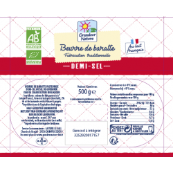 Crème de lait pasteurisée*, ferments lactiques 2%, sel 2% *issu de l'agriculture biologique