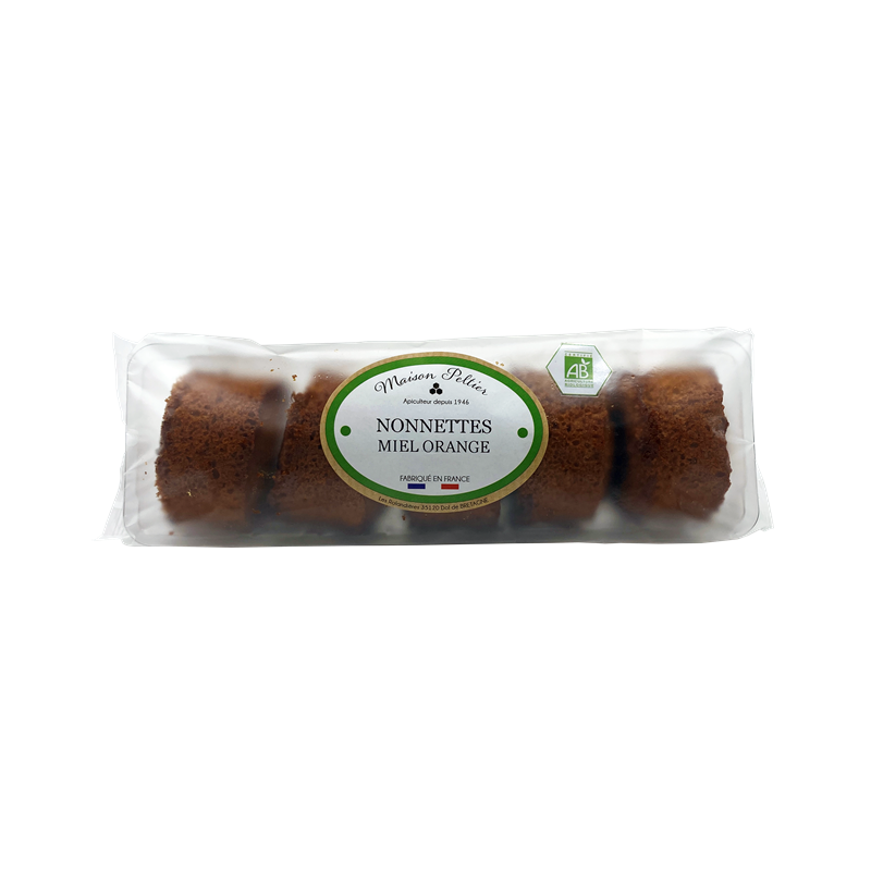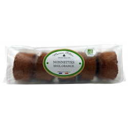 Miel de fleurs 48% BIO, farine de BLE de française BIO, sucre de canne BIO équitable, purée d'orange BIO 12%, UFS entiers de France BIO, poudres à lever: bicarbonates de sodium et d'ammonium, jus de citron à base de concentré BIO, pectine, épices BIO, huile essentielle d'orange BIO.