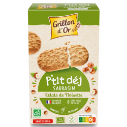 farine de sarrasin 20% ,amidon de maïs ,beurre frais 19% ,sucre de canne ,noisettes toastées 11% ,tapioca ,farine de soja ,sirop de riz ,sel ,poudre à lever : bicarbonate d ammonium