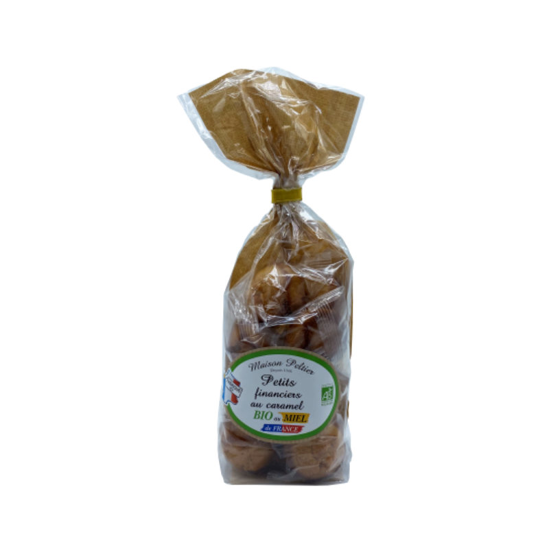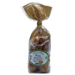 Sucre de canne BIO équitable 26%, blanc d'UF BIO de France 21%, BEURRE BIO de France, poudre d'AMANDES BIO 18%, farine de BLE BIO française 15%, miel de France BIO 5%, éclats de caramel aromatique BIO 5% ( sucre , sirop de glucose, CRÈME , BEURRE, eau, sel de Guérande), arôme naturel de caramel BIO.