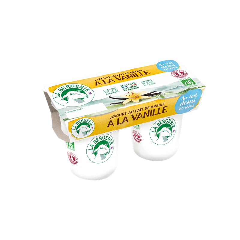 Lait de brebis écrémé pasteurisé*, lait de brebis entier pasteurisé*, sucre de canne non raffiné issu du commerce équitable* (7,5%), arôme naturel de vanille* (1,7%), ferments lactiques sélectionnés (lait) *Ingrédients issus d'une agriculture biologqiue.