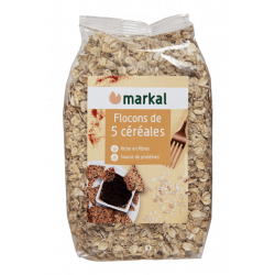 Flocons 5 céréales toastées (blé, orge, seigle, av, riz), riche en fibres 500g
