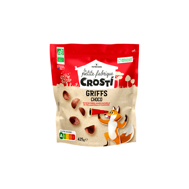 Céréales* 69,6% (farine de blé* complet T150 41,1%, farine de blé* T65), chocolat* en poudre 15,6% (sucre de