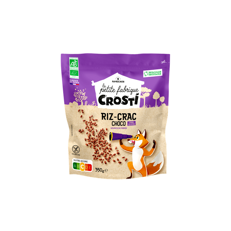 Céréales * 76,2% (riz* complet, maïs*, son de riz*), chocolat* en poudre 11,2% (sucre de canne*, cacao* en