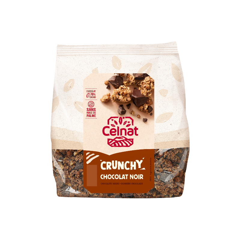 Agglomérats au chocolats (flocons davoine*, sucre de canne* complet, huile de tournesol*, billettes de riz* (riz*, orge* maltée, sel de mer), sirop de riz*, chocolat* (pâte de cacao*, sucre de canne* complet, beurre de cacao*), poudre de cacao* , noix de coco*, sel de mer),Pépites de chocolat* noir 70% cacao min. (pâte de cacao* , sucre* , beurre de cacao* ).,soja,fruits à coques,sésame,lait