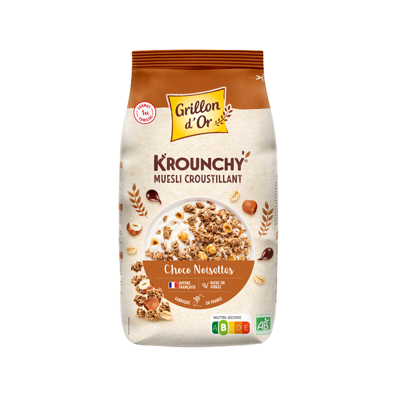 3,4% (noisettes* 1,7%, sucre de canne*), farine de blé*, noisettes toastées* 2,8%, huile de tournesol*, poudre