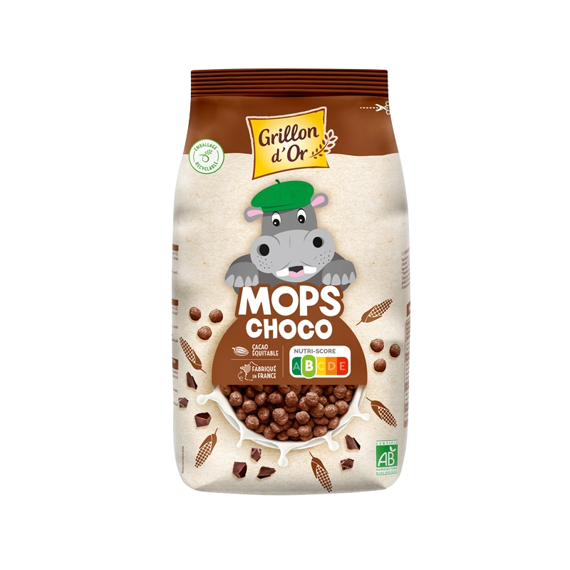 maïs 73% ,sucre de canne ,poudre de cacao dégraissé 2.3% ,pépites de chocolat (pâte de cacao, sucre de canne, beurre de cacao, extrait de vanille) 2.1% ,poudre de cacao ,vanille
