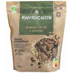 extrait de romarin*), graines de courge* 6,3%, graines de lin* 5,6%, sirop de blé*, cannelle*.