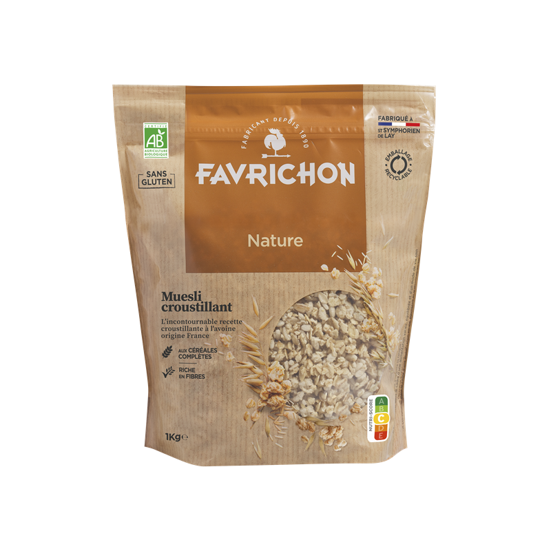 céréales* complètes 70,3% (flocons d'avoine* 54,2%, riz* 14,8%), sucre de canne*
