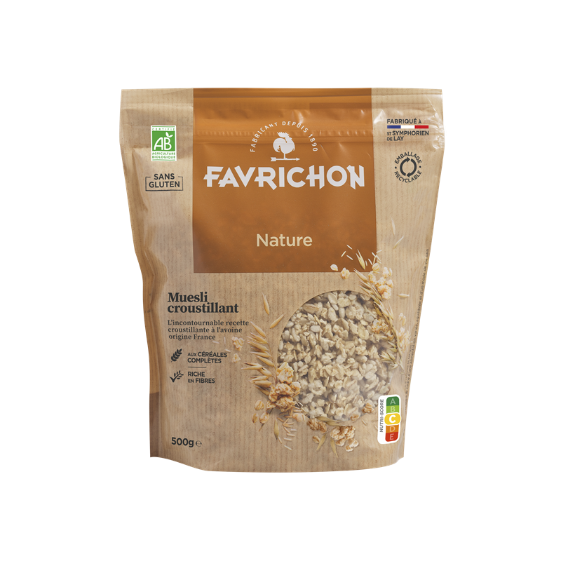 céréales* complètes 70,3% (flocons d'avoine* 54,2%, riz* 14,8%), sucre de canne*