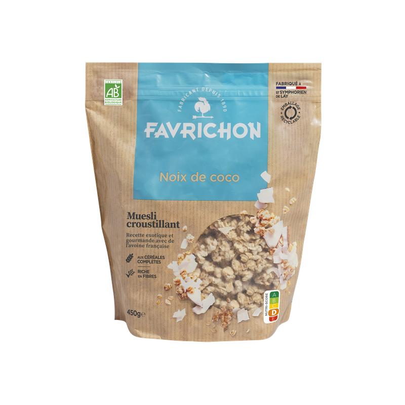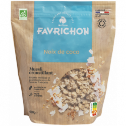 céréales* complètes 53,4% (flocons d'avoine*, riz*), noix de coco* 20,8%