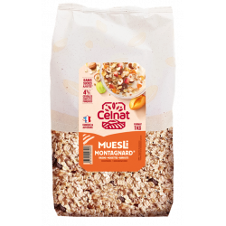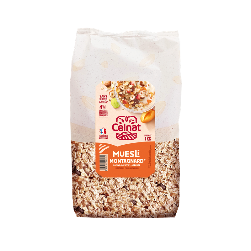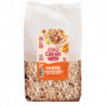 Sarrasin Grillé KASHA 5% ,Flocon de soja toasté 3% ,Flocon de Millet 5.2% ,Sésame blond toasté 5.2% ,Graine de tournesol 2.6% ,Flocon d Avoine 15.75% ,Flocon de blé toasté 15.75% ,Flocon d orge toasté 15.75% ,Flocon de Seigle toasté 9.45% ,Flocon de riz toasté 6.3% ,Raisins secs 17% ,Noisettes Toastées 3% ,Pommes 2.5% ,Abricots secs 1.5% issus de l'agriculture biologique.