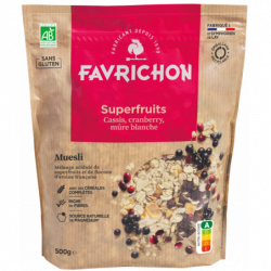 sucre de canne*, huile de tournesol*), noisettes* hachées grillées, amandes* effilées, mûres*