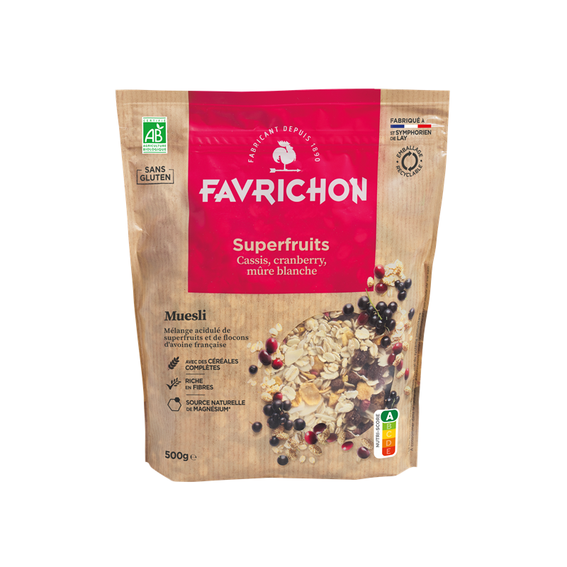 mer)], fruits* 26,6% [raisins* (raisins*, huile de tournesol*), cranberries* 3,9% (cranberries*,