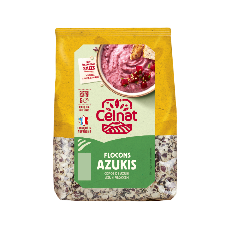 Les flocons sont constitués des grains d'azukis entiers nettoyés puis cuits à la vapeur. Cela permet de réduire considérablement le temps de cuisson de cette légumineuse sans altérer sa saveur.