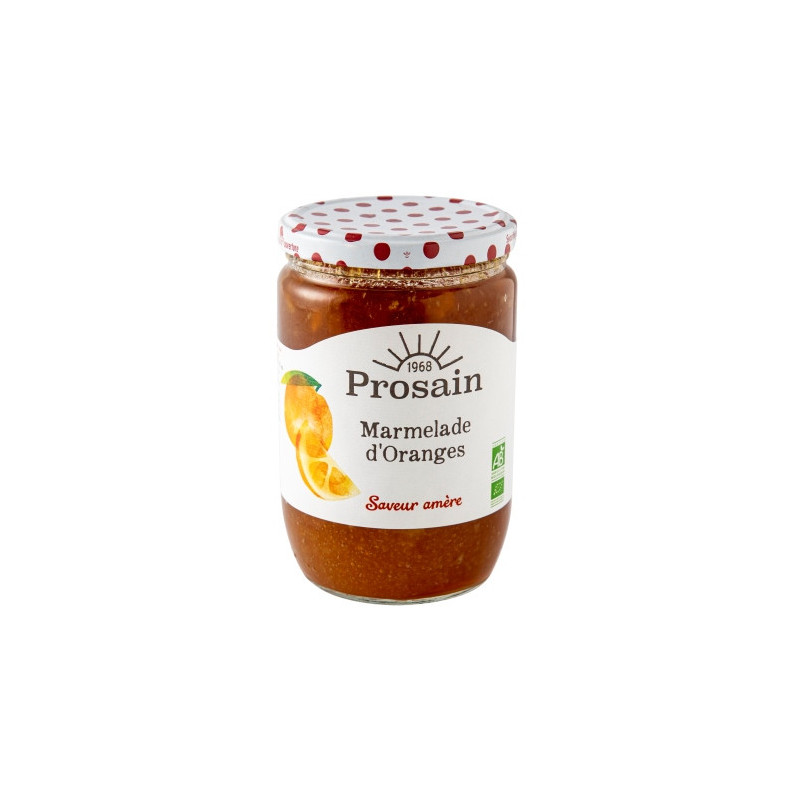 Sucre de canne* non raffiné, pulpes doranges* (dont 70% de pulpe d'oranges* amères) avec écorces en lamelles, eau, jus concentré de citron*, agent gélifiant : pectine de fruits. *Ingrédients issus de l'agriculture biologique. Souligné : commerce équitable contrôlé Fair For Life. 58% du total des ingrédients sont issus du commerce équitable