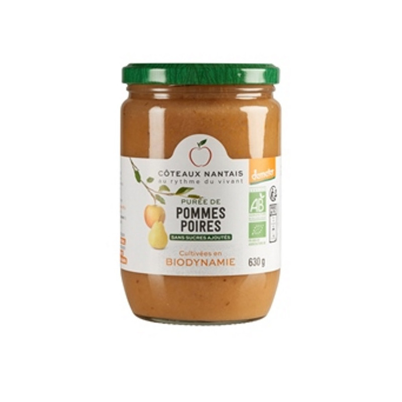 Léquilibre de deux fruits rustiques : la pomme et la poire, un instant plaisir pour un moment détente. Purée élaborée à partir de fruits entiers des coteaux Nantais, cueillis à maturité et cuits lentement à létouffée. Sans sucres ajoutés, à consommer quand vous le voulez