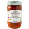 légumes* 54% (courgettes* 15%, carottes* 11%, pois chiches* réhydratés 8%, navet* 8%, céleri*, oignon*, poivrons* rouges 3%), eau, concentré de tomate*, huile d'olive* vierge extra extraite à froid, sel de mer, épices*, ail* poudre, oignon* poudre.