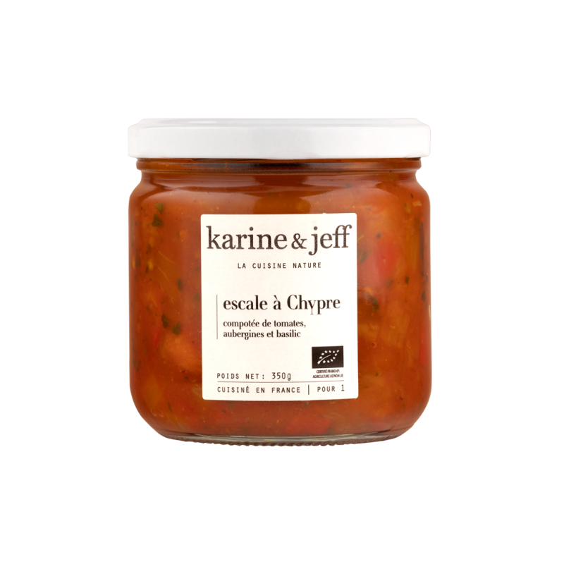 Escale à Chypre : compotée de tomates, aubergines et basilic 350g