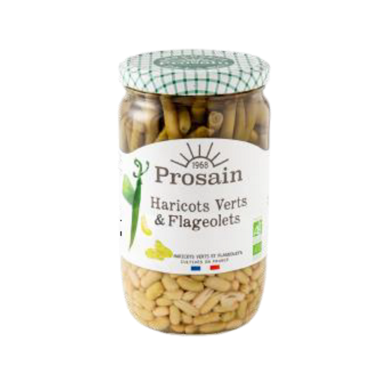Haricots verts* très fins 30%, Flageolets réhydratés* 30%, eau, sel de mer, oignon poudre*,