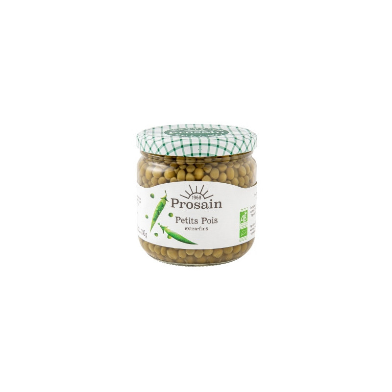 Petits pois* extra fins 63%, eau, garniture* 3% (oignon*, carotte*),