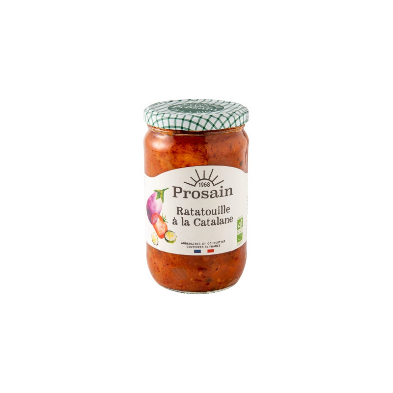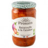 tomate* 26% (pulpe*, concentré*), aubergines* frites 21%, courgettes* frites 21%, oignons*, eau, huile de tournesol* désodorisée, poivrons* rouges 4%, sel de mer, huile d'olive* vierge extra extraite à froid, jus concentré de citron*, ail*, échalote*, épices*, plantes aromatiques*.