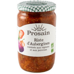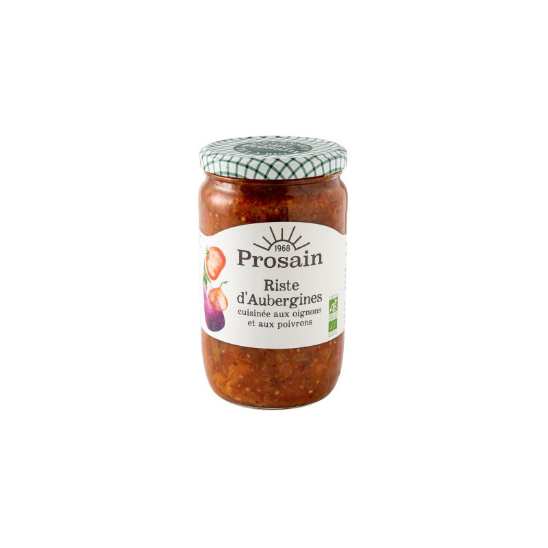 aubergines* en tranches frites 54%, pulpe de tomate* 30%, oignons* 8%, huile de tournesol* désodorisée, poivrons rouges*, sirop de riz*, sel de mer, ail*, huile d'olive* vierge extra extraite à froid, jus concentré de citron*, thym*, poivre*.