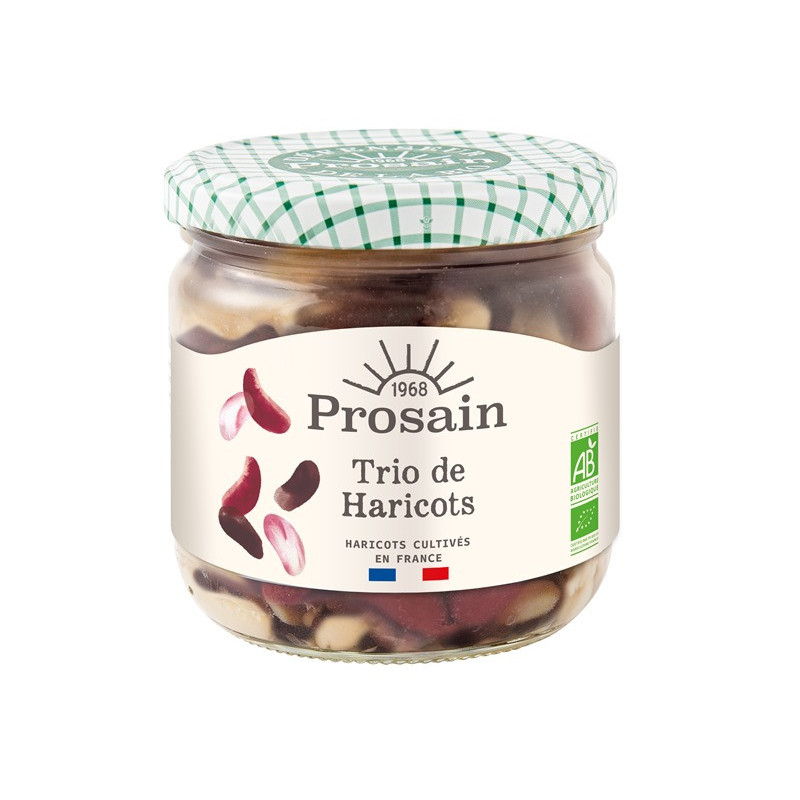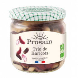 Haricots réhydratés* (noirs* 22%, rouges* 22%, borlotti* 22%), eau, sel de mer. *Ingrédients issus de l'agriculture biologique. Allergènes: peut contenir des traces de gluten, soja et moutarde