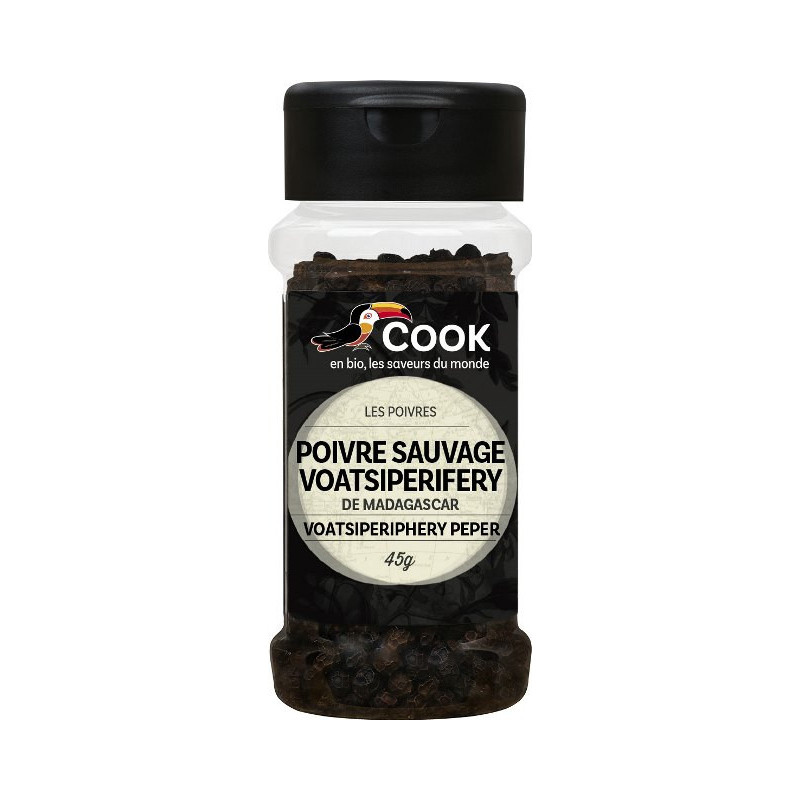 Le poivre noir Voatsiperifery est originaire de Madagascar. Il développe des saveurs piquantes et