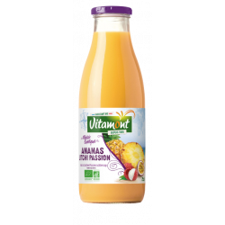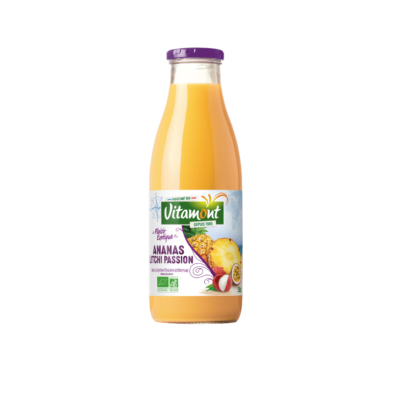jus d'ananas* (75%), jus de litchi* (22%), jus de fruit de la passion* (3%).