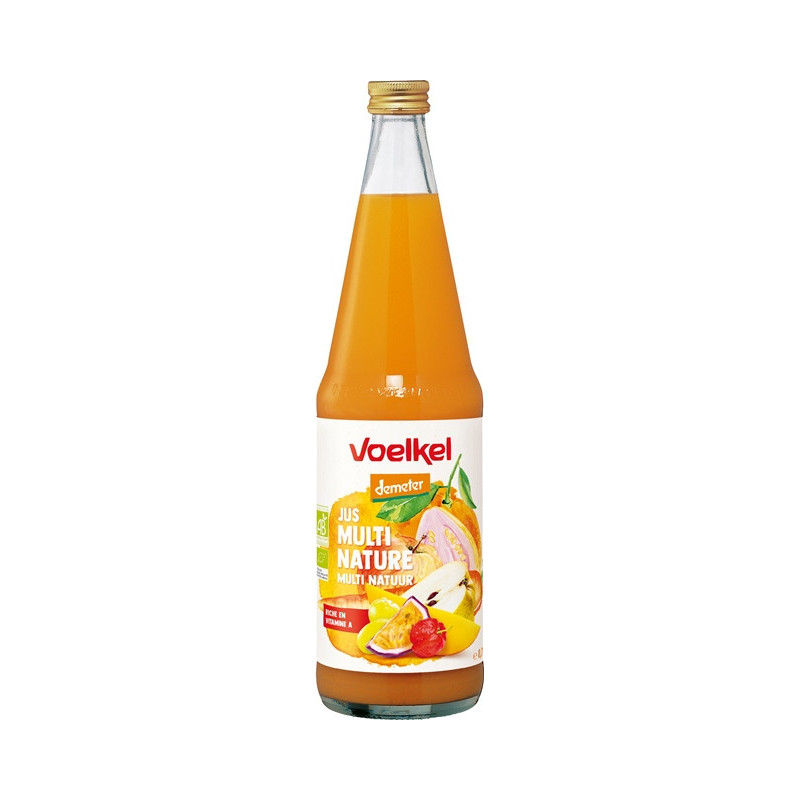 jus dorange** 27,5 %, jus de pomme** 27,5 %, jus de carotte** 15 %, jus de raisin** 10 %, jus de poire** 4 %, purée de mangue** 4 %, purée de banane* 4 %, purée de