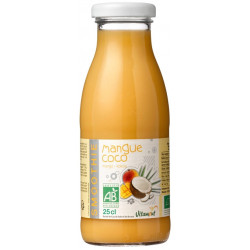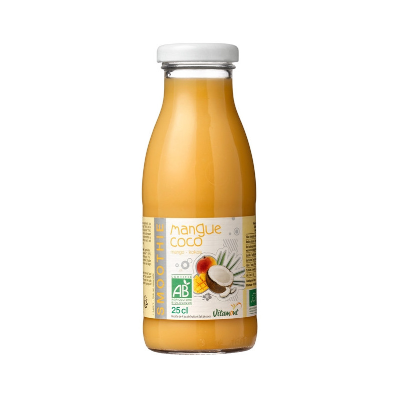 jus d'orange* (30%), jus de pomme*, purée de banane*, purée de mangue* (17%),