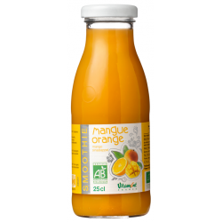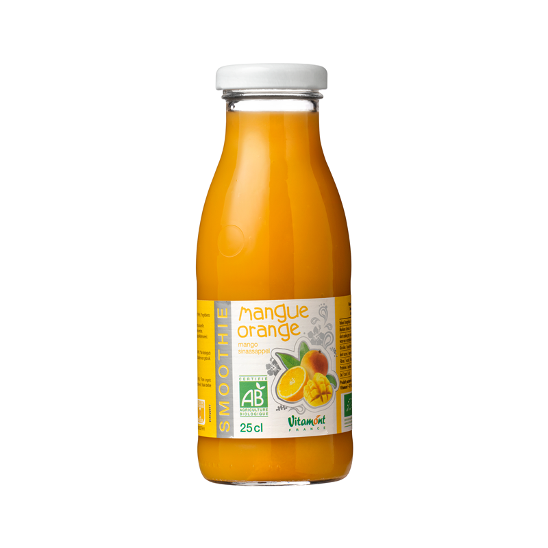 purée de mangue* (40%), jus d'orange* (36%), jus de pomme* (24%).