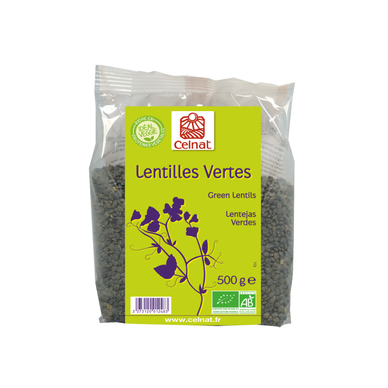 Lentilles vertes 100% issues de l'agriculture biologique.