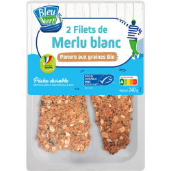 NON BIO France Filet de merlu MSC panure aux graines Bio 240g BLEU VERT 30.58 € / kg 7,34 € / la pièce lens shopping_cart 0