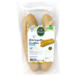 Demi-baguettes nature 2 x 140g (au levain naturel et levure de boulangerie)