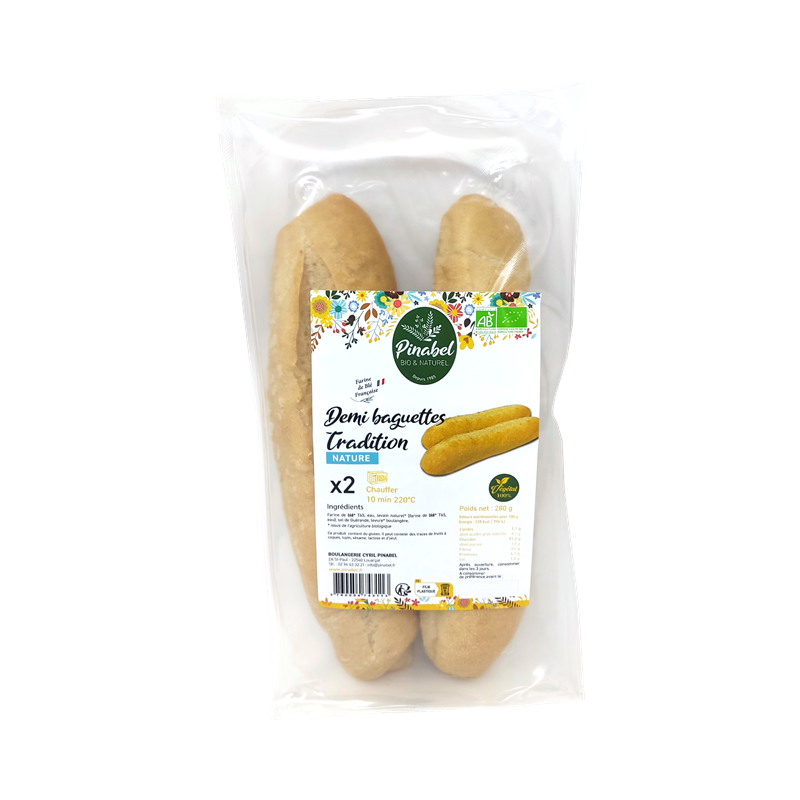 Farine de blé* T65, eau filtrée, levain* (farine de blé* T65, eau, sel, levure* boulangère), sel de Guérande, levure* boulangère.