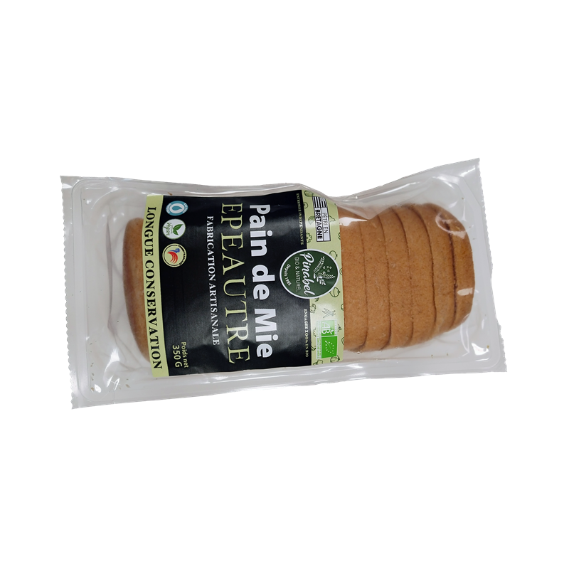 Farine d'épeautre* 41,6% (T110 et T80), eau filtrée, farine de blé* T65, huile de colza*, sirop de blé*, levain* (farine de blé* T65, eau, sel, levure* boulangère), gluten de blé*, farine de lupin*, sel de Guérande, levure* boulangère.
